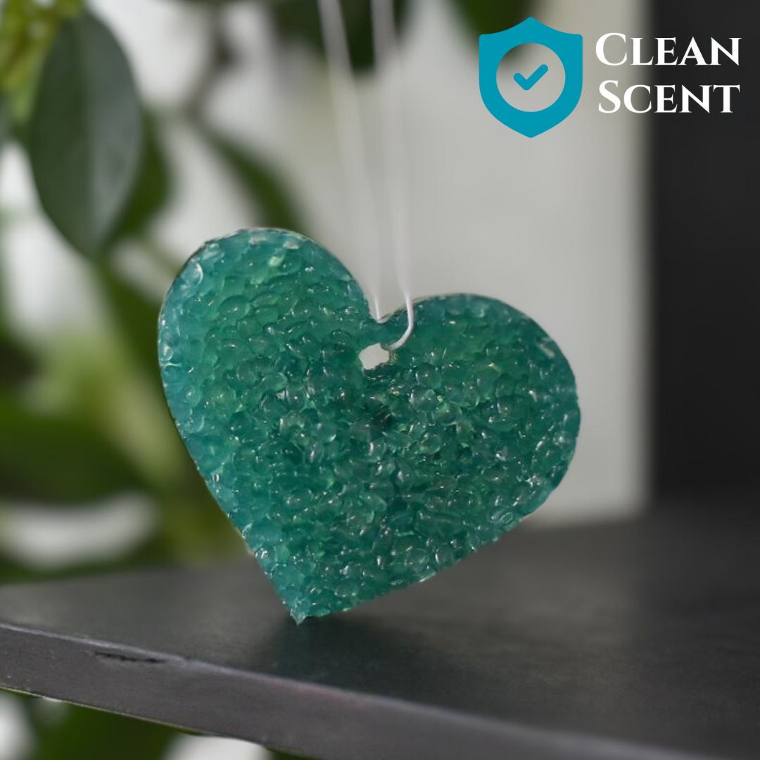 Our air fresheners are made with aroma beads, which are little plastic beads that soak up fragrance oil & coloring and then baked to retain their scent.